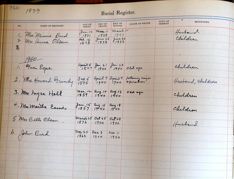Edwin was buried at the Union Cemetery in Alto township, Lee county, Illinois. Here is the funeral record (entry #2) from the Calvary Lutheran church located next to the cemetery.